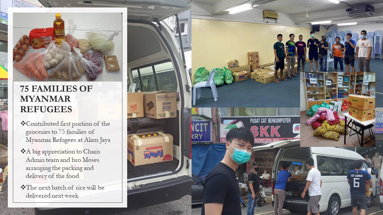 • Contributed first portion of the groceries to 75 families of Myanmar Refugess at Alam Jaya.