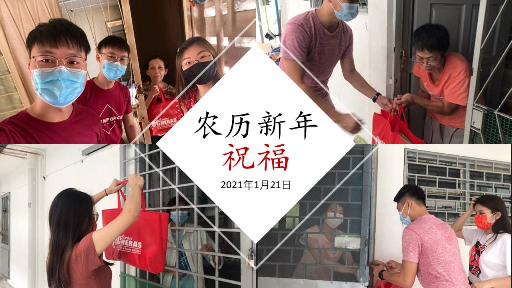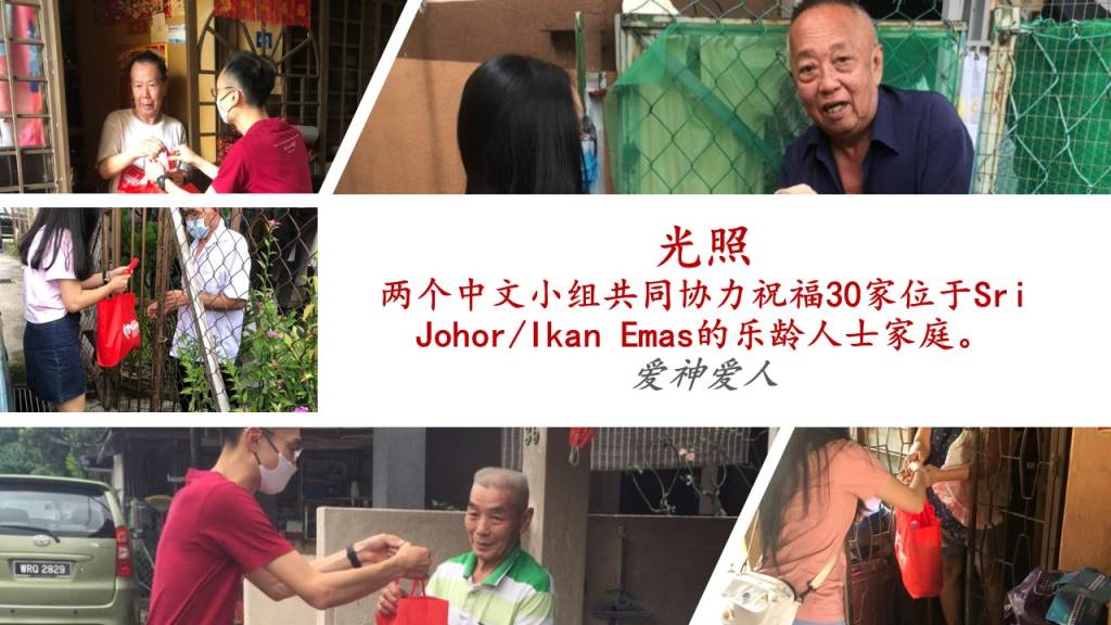 两个中文小组共同协力祝福30家位于Sri Johor/ Ikan Emas的乐龄人士家庭。