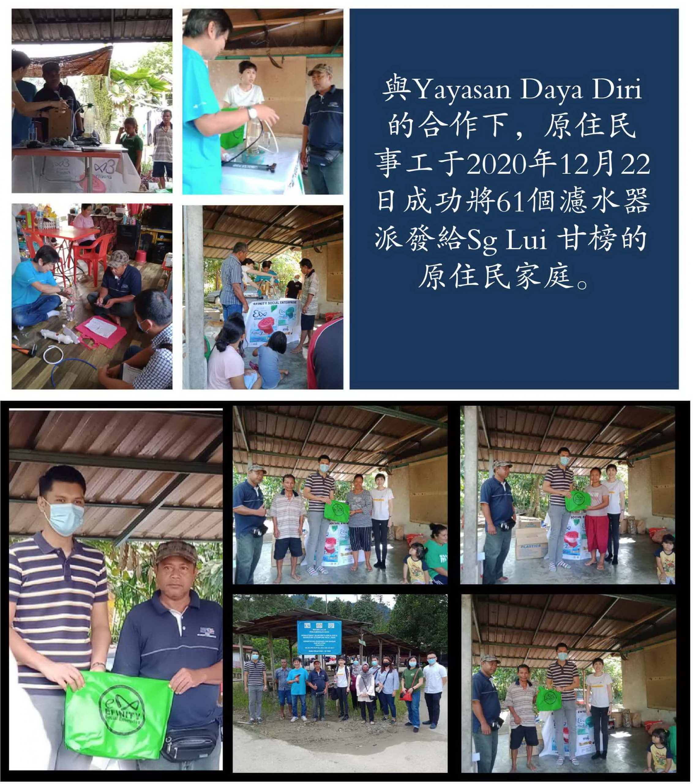 赞美主!因着祂的良善与信实临到原住民。 为着义工而赞美神,虽然我们有超过9个月无法进入甘榜,他们仍然热衷于施工。 荣耀归于真神! Sg Lui甘榜原住民的圣诞祝福。 原住民施工团队安排于2020年12月21日及23日到Sg Lui将圣诞祝福派发给居民们。 派发滤水器到61户家庭 派发粮食礼包到71户家庭 与儿童欢庆圣诞 为榴莲树提供肥料