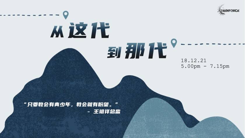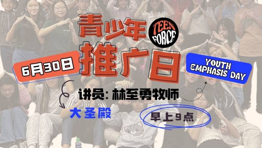 我们的青少年事工(TeenForce)致力于培养一班 “FUN” 转这世代,生命有影响力的年青人。透过一系列的节目包括敬拜赞美、课程分享、破冰游戏、户外活动、祷告会、灵修班、生日派对等, 让他们不只能拓展朋友圈,一起欢乐,同时也能发掘他们的恩赐,在信仰的道上更专注于神。
